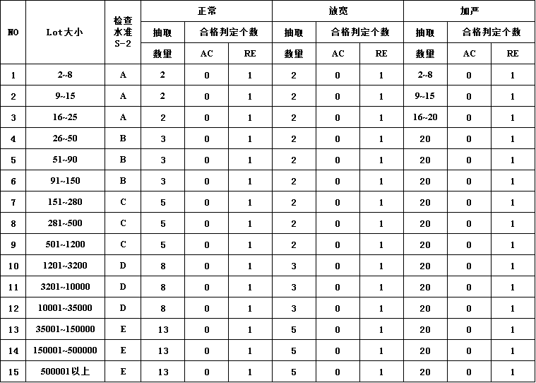 按批次不同數量的多少抽取樣品,只要發現一個不良樣品都判定整批不良。
